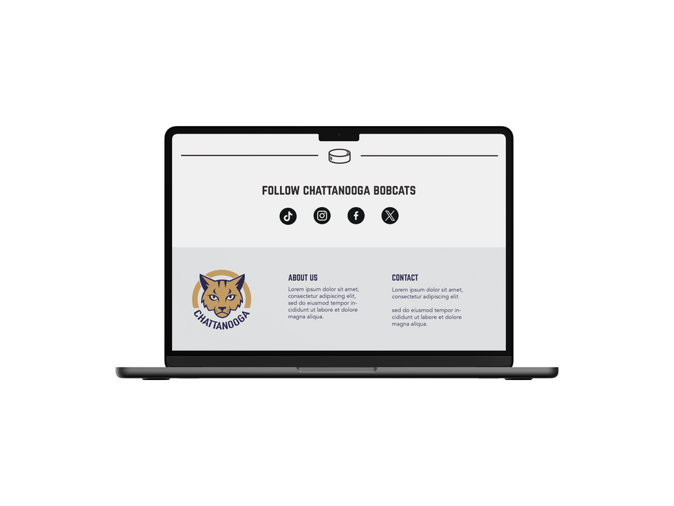 For this project, I designed a fictional ice hockey team for Chattanooga, Tennessee, called the Chattanooga Bobcats. For this team I designed a landing page for the Chattanooga Bobcats, a hockey team that captures the energy and competitive spirit of the sport. The design focuses on bold colors, dynamic imagery, and an intuitive layout, reflecting the team’s personality and engaging users with a memorable online experience.